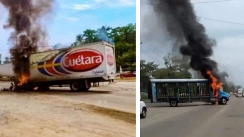 La quema de vehículos comenzó después de que transportistas bloquearan la carretera federal a la altura de la colonia Jardín. En la manifestación participaron choferes de taxis colectivos, urvan y mototaxis.