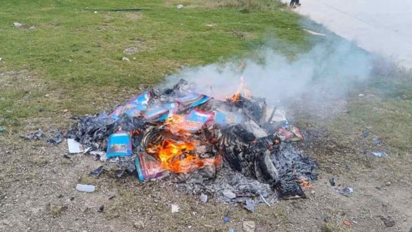 La quema se realizó en el interior de la escuela primaria de la comunidad, mientras los presentes gritaban consignas como: “Queremos los libros anteriores, no porquerías”, “No queremos basura”, “No queremos triple x” o “Los libros sólo para adultos, no para niños”.