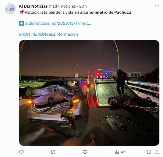 Pachuca, Hidalgo - Elementos de la Policía Municipal de Pachuca detuvieron a un conductor de 25 años que, en estado de ebriedad, atropelló y mató a un motociclista mientras trataba de evadir un alcoholímetro.