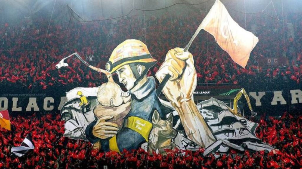 La afición del conjunto turco quiso honrar a las víctimas del terremoto del pasado lunes 6 de febrero, donde apareció el perro mexicano que falleció durante las labores de rescate.