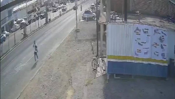 En el video compartido en redes sociales, se puede ver el momento en que el joven va caminando por la carretera en Tulancingo, Hidalgo e incluso en un momento intenta correr para cruzar.