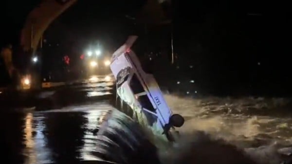 VIDEO: Arroyo se desborda y arrastra a taxi; conductor fallece y pasajero está desaparecido