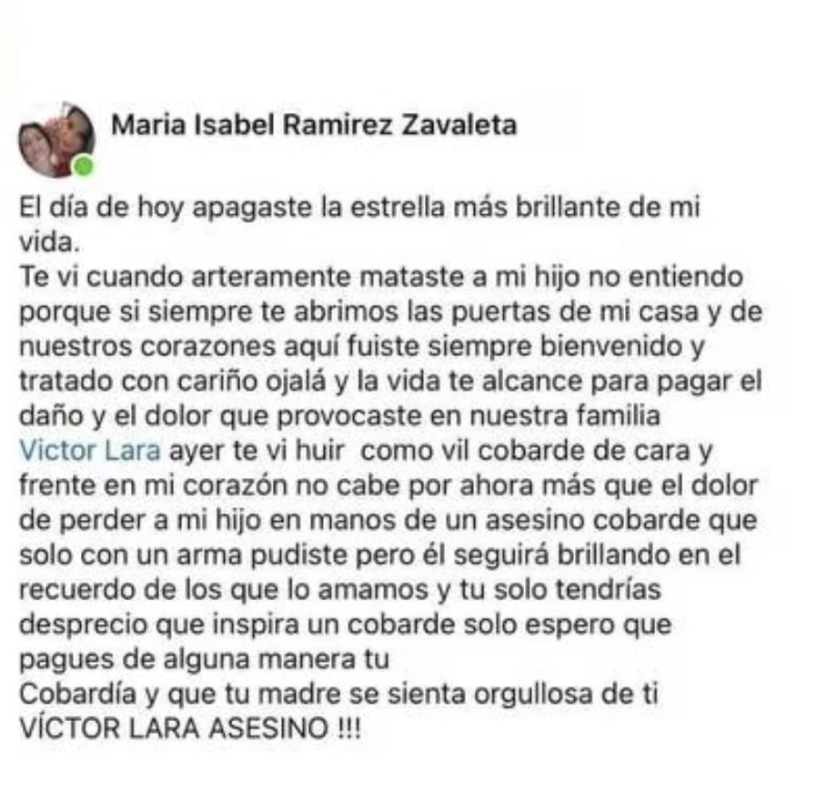 La señora dijo que identificó de inmediato a uno de los que huía de la escena atroz: era Víctor, un íntimo amigo de su hijo, aseguró.