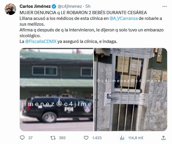 Ciudad de México, México - Una mujer que se identificó solo como Liliana denunció que los médicos de una clínica ubicada en la alcaldía Venustiano Carranza robaron a sus dos bebés tras su alumbramiento en una operación de cesárea.