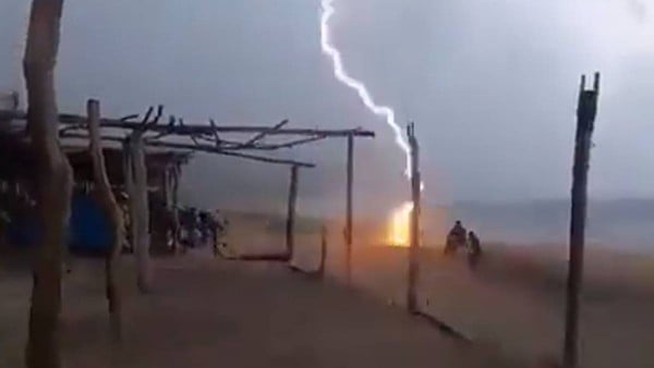En el video se puede ver a las dos personas caminando por la playa, cuando son impactadas por un rayo y se desploman en la arena.