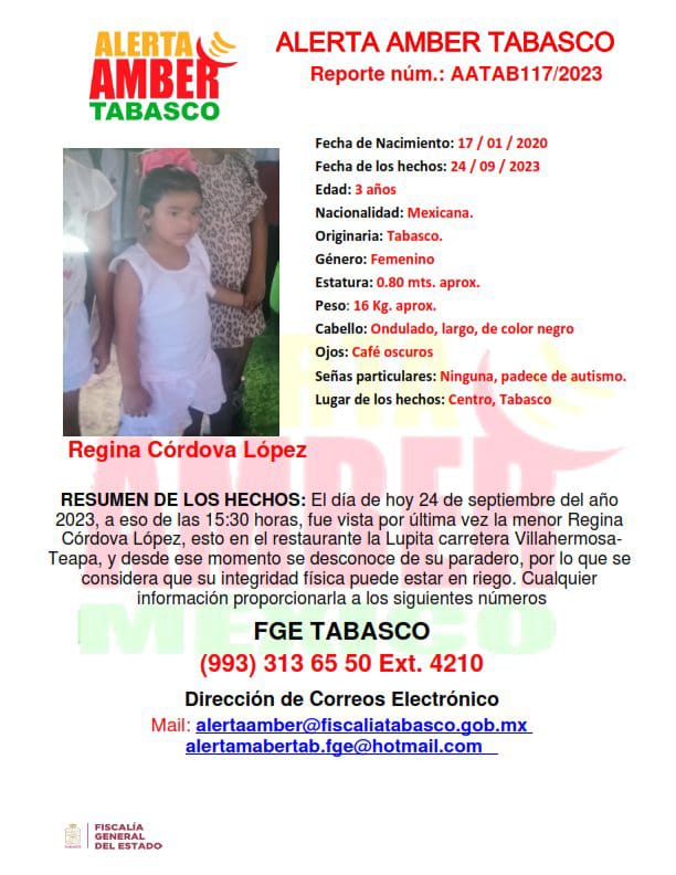 Villahermosa, Tabasco - El pasado domingo, se encendieron las alarmas en el estado de Tabasco debido a la desaparición de una menor identificada como