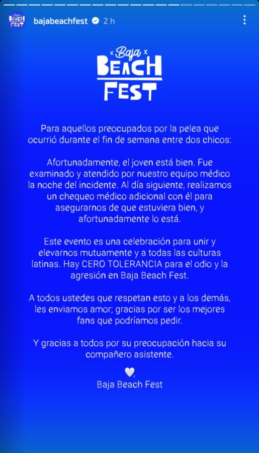Sin embargo, la realidad resultó menos trágica de lo que inicialmente se pensó, ya que tanto los organizadores del Baja Beach Fest como la Fiscalía General del Estado (FGE) de Baja California desmintieron los rumores sobre la muerte del joven agredido.