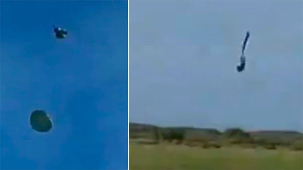Las imágenes muestran cómo siete cadetes saltan desde un helicóptero; sin embargo, solo seis de ellos logran abrir sus paracaídas.