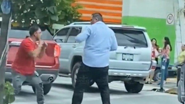 Testigos presenciales grabaron cómo la discusión entre el chofer, identificado por una camiseta y gorra roja, y el automovilista vestido de azul escaló rápidamente a una pelea física.Te puede interesar: VIDEO: Automovilista es captado mientras agrede a conductor y lo incita a pelear