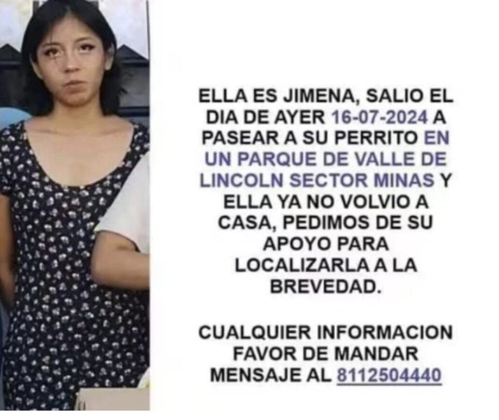 Nuevo León - Jimena Jacqueline salió a pasear a su perrito y ya no pudo regresar a su casa. Un día después encontraron su cuerpo en un pozo de agua.