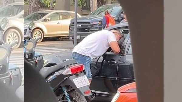 Lo que empezó con una simple mirada se convirtió rápidamente en una escena digna de telenovela. El joven, ni lento ni perezoso, se bajó de la moto y, en un movimiento digno de Romeo, se acercó al coche de la chica.