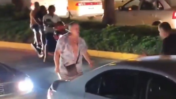 Las imágenes, captadas por un testigo, muestran el momento en que los dos hombres y las dos mujeres descienden de sus vehículos tras un percance automovilístico y comienzan a agredirse mutuamente.