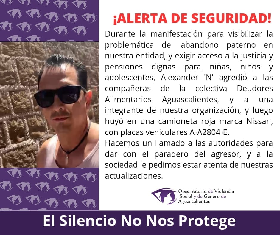 Debido a esto, el Observatorio de Violencia Social y de Género de Aguascalientes (OVSGA) pidió apoyo a las autoridades para localizar al agresor, quien, según la denuncia, tiene dos hijos menores en abandono.