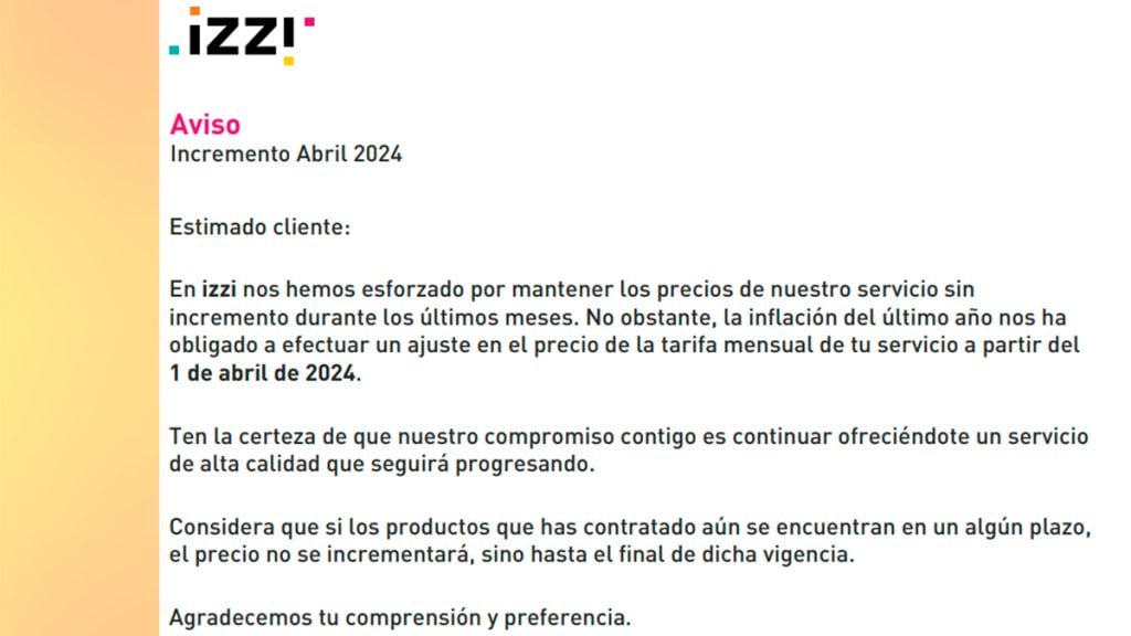 Este ajuste representó un costo adicional de entre 10 y 40 pesos, dependiendo del paquete contratado. Izzi no ha emitido nuevos comunicados respecto a futuros aumentos relacionados con los recientes cambios en los aranceles.