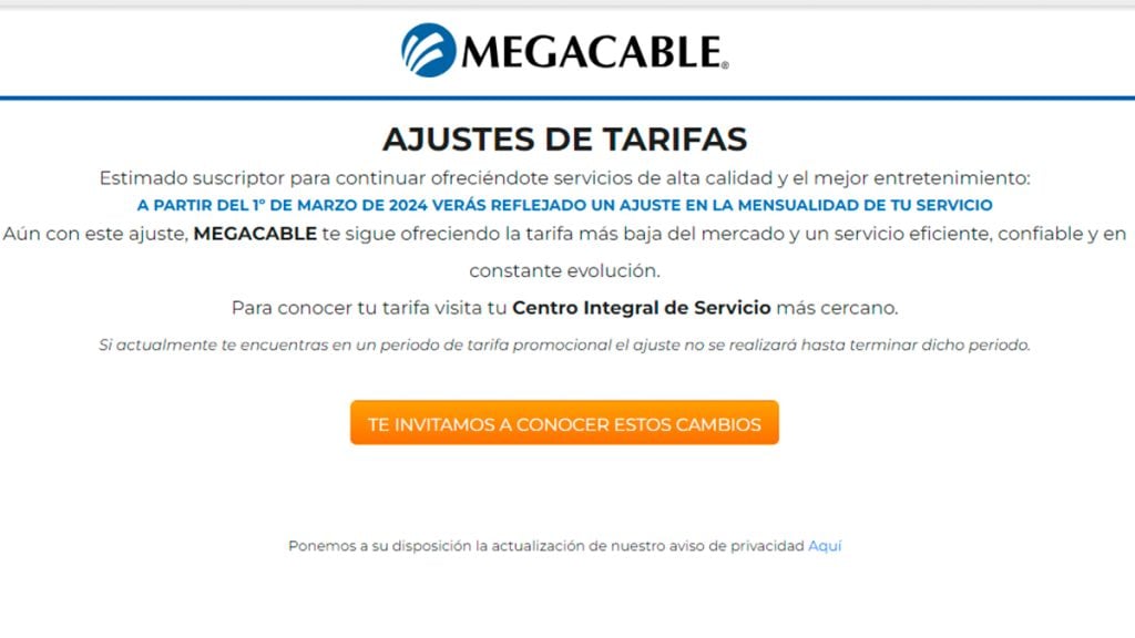 Megacable también ajustó sus tarifas desde el 1 de marzo, aumentando en 50 pesos todos sus paquetes.