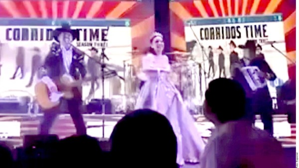 Y arriba la quinceañera", entonó el vocalista Mario Quintero al lado de la festejada, en un escenario con tres megapantallas en donde se presumía el álbum de la agrupación: Corridos Time.