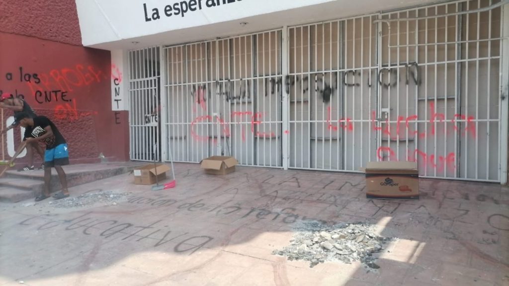 Este martes, profesores de la sección 7 de la CNTE vandalizaron oficinas de diferentes partidos en protesta para exigir sus demandas.