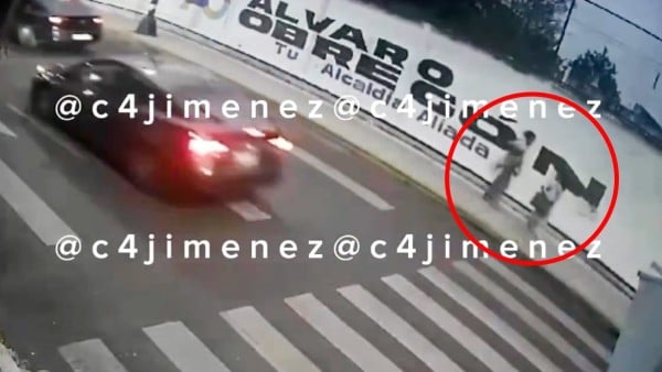 El periodista Carlos Jiménez (@c4jimenez) compartió un video del hecho. En las imágenes se observa cómo la mujer camina tranquilamente por la banqueta cuando un hombre pasa a su lado en sentido contrario.
