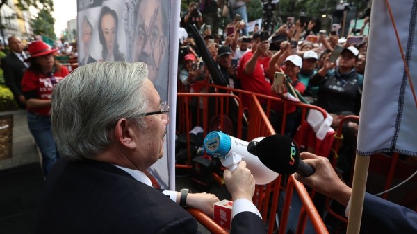 Con un altavoz frente al edificio de la Corte, detrás de las vallas con que fue protegido dijo: "Compañeros, los quiero muchísimo, son ustedes verdaderamente el alma del Poder Judicial y, por lo tanto, del México democrático e independiente", agregó entre aplausos.