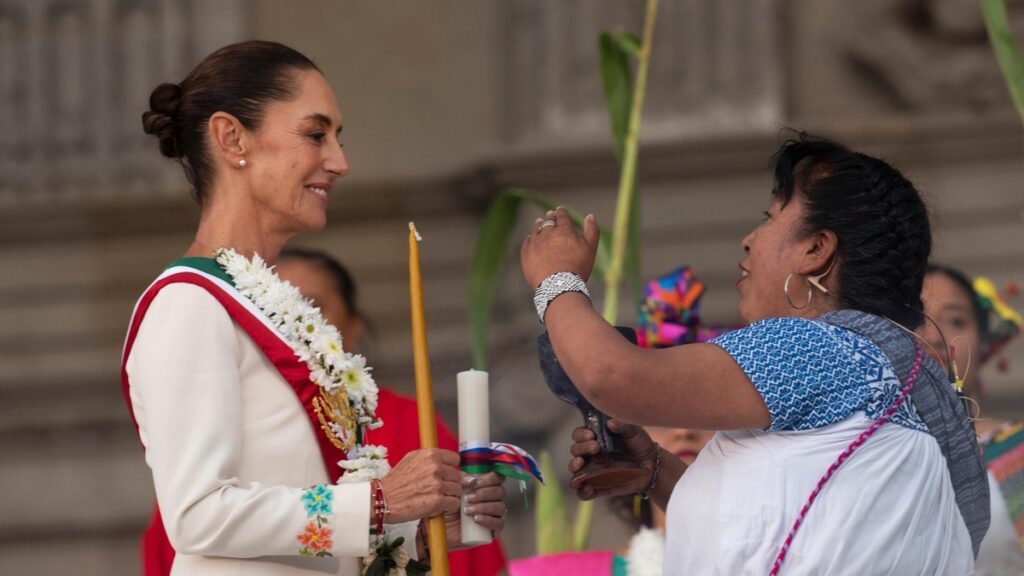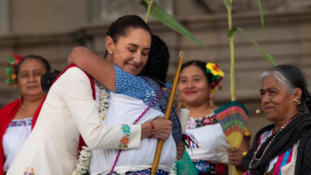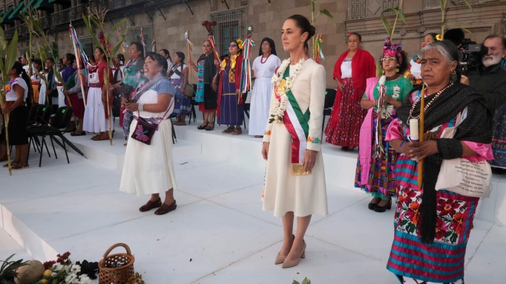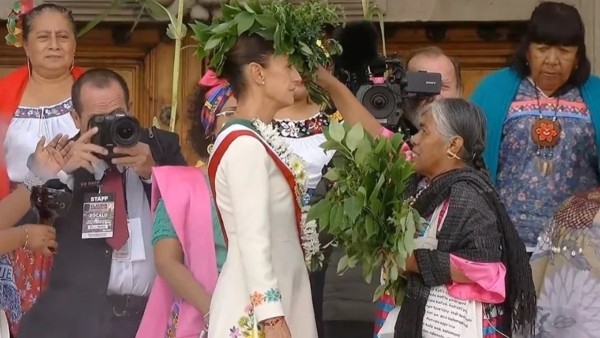 Tú eres la voz de las que no tuvimos voz por mucho tiempo, eres la voz de nuestros pueblos, eres la esperanza que nosotros teníamos. Hoy las mujeres indígenas estamos de fiesta, las mujeres, pero no solamente las mujeres indígenas, porque por primera vez una mujer llega a este lugar tan preciado para nosotros. Claudia, que los elementos sagrados te acompañen, que el agua bendita purifique siempre tu alma, que el aire siempre esté contigo, que nuestra madrecita tierra te bendiga siempre", le dijo una mujer antes de continuar con los trabajos de limpia".