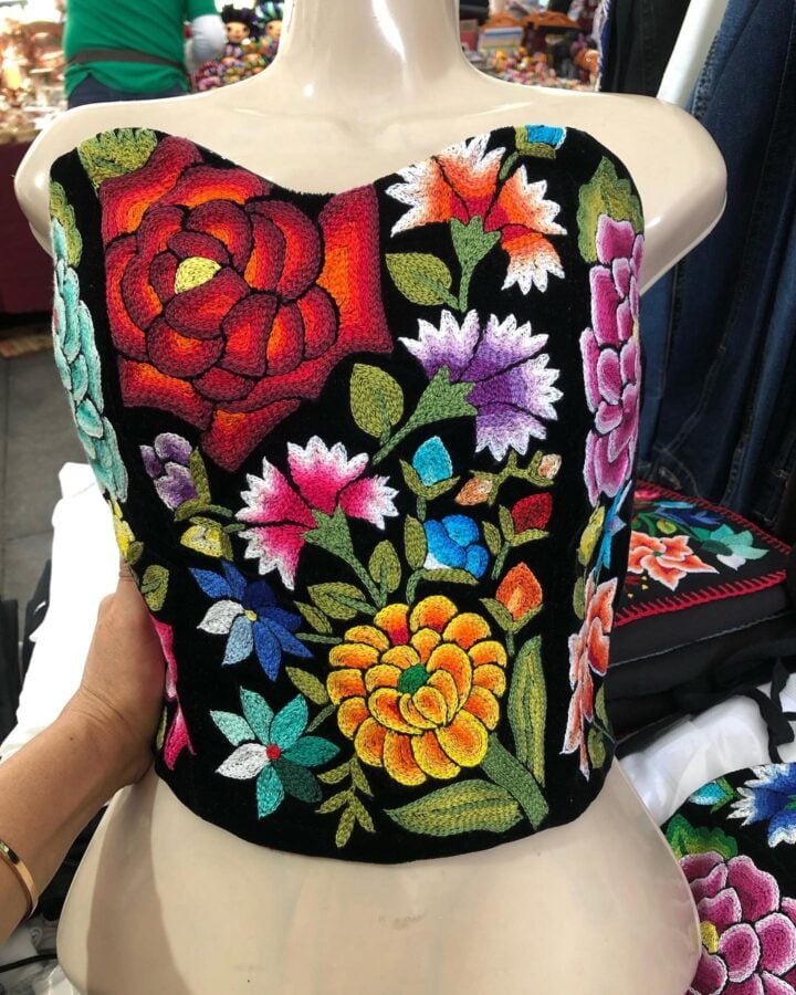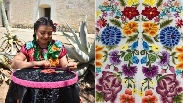 Esta prenda cuenta con un bello bordado y fue diseñada por la artesana oaxaqueña Claudia Vásquez Aquino.