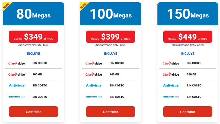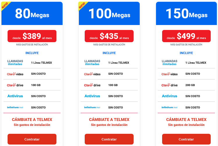 - Paquete de 100 Mbps: 399 pesos mensuales