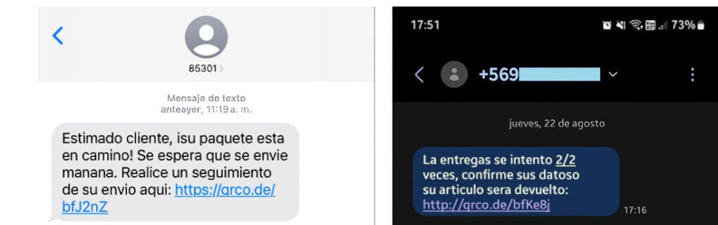 El modus operandi inicia con el envío de un SMS que contiene un mensaje sobre la entrega de un presunto paquete, además de un enlace aparentemente inofensivo. Sin embargo, al hacer click en este link, se dirige al usuario a una imitación de la página oficial de una compañía de envíos.