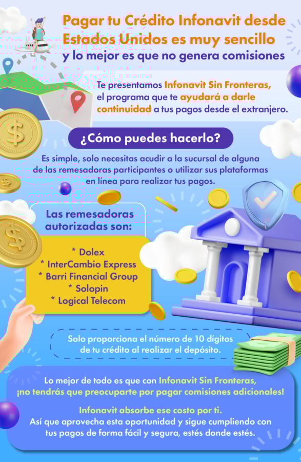 Y es que el Infonavit cuenta con el programa Infonavit Sin Fronteras, que permite seguir realizando los pagos desde cualquier parte de los Estados Unidos.