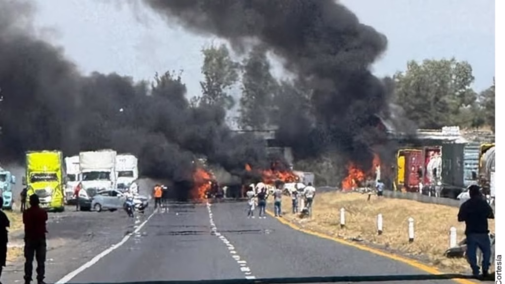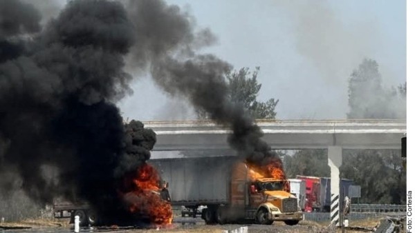 Cinco tráileres se incendiaron por hombres armados en carreteras del estado de Guanajuato.