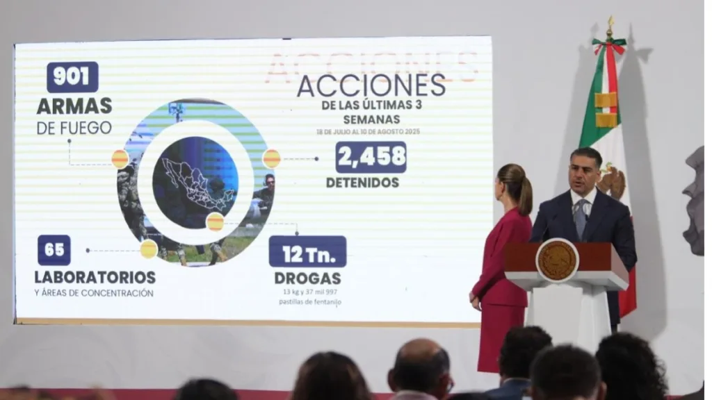 En aquella ocasión, el Gabinete de Seguridad compartió que ocho estados concentran el ilícito del fuero federal, con 66 por ciento, a nivel nacional; cinco de ellos con gobiernos morenistas y dos, emecistas: Estado de México, Guanajuato, Nuevo León, Ciudad de México, Veracruz, Jalisco, Michoacán y Guerrero.