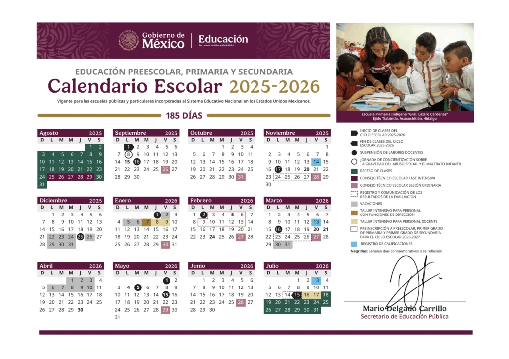 La Secretaría de Educación Pública reiteró este jueves que, con el ajuste al calendario escolar 2025-2026, las clases comenzarán el lunes 1 de septiembre de 2025; este cambio termina con la costumbre de iniciar clases a finales de agosto, vigente desde 1993.