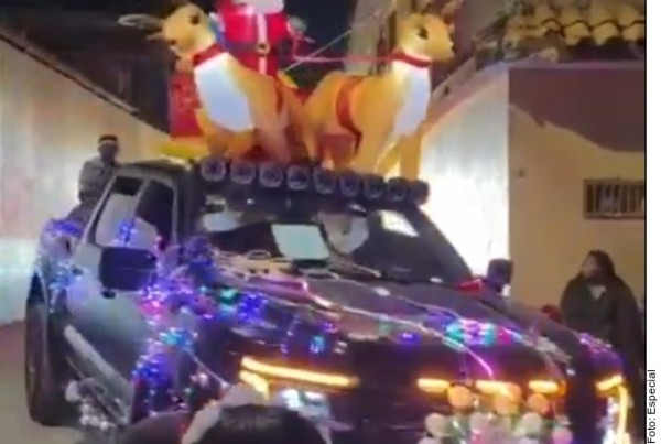En una camioneta blanca, incluso, aparece un sujeto vestido de Santa Claus, quien le tira los dulces a los niños que son acompañados por sus padres en una calle de esta región.
