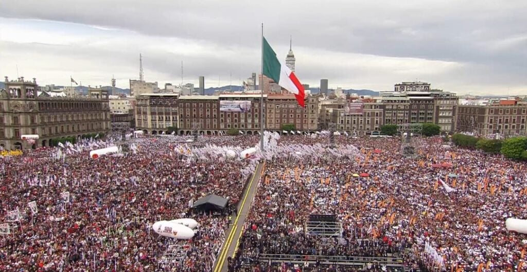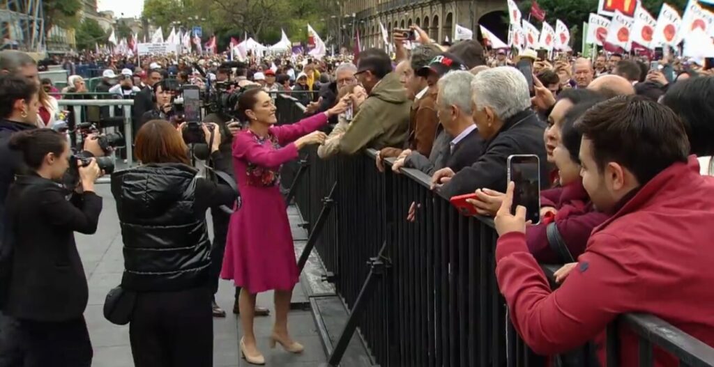 La mandataria federal convocó a sus simpatizantes a la Plaza de la Constitución, desde donde pronuncia un mensaje sobre las políticas públicas, proyectos, programas y acciones puestas en marcha por el Gobierno federal en el arranque de este sexenio.