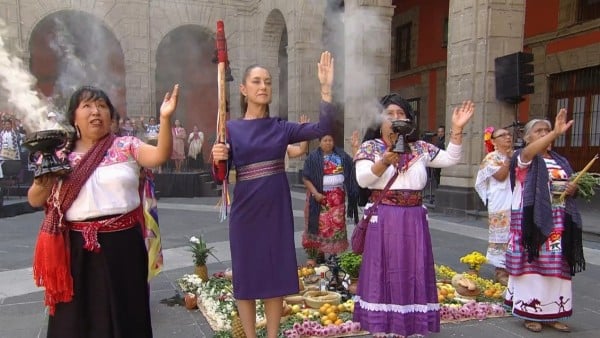 La mandataria realizó un ritual dirigido por mujeres indígenas, acompañada de funcionarias locales y federales.