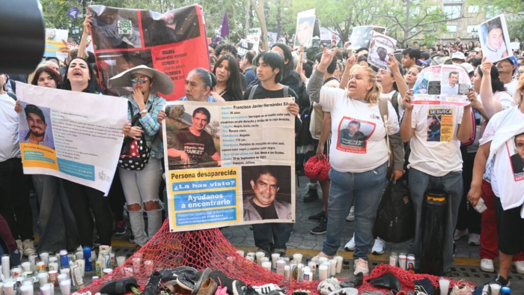 -Jalisco: Ciudadanos llevaron pancartas y gritaron consignas para recordar a las víctimas de desaparición. Jalisco lidera las estadísticas de personas desaparecidas con más de 14 mil casos.