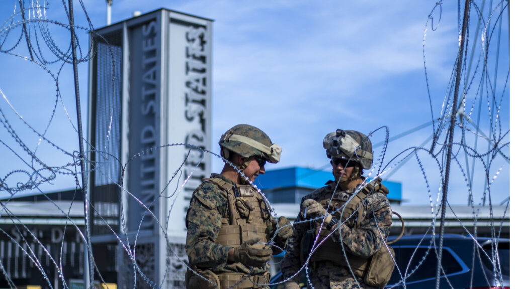 El buque de guerra se une a las tropas enviadas por tierra a la frontera por Donald Trump. Foto: Agencia Reforma.
