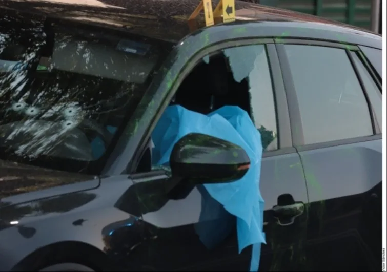Primero disparó sobre el parabrisas contra Guzmán y luego giró a su derecha para disparar cruzado sobre Muñoz, quien intentó cerrar la puerta. Después arremetió directo otros cuatro disparos sobre la ventanilla de la conductora.