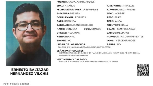 El sacerdote Ernesto Baltazar Hernández Vilchis está desaparecido; tras el reporte, las autoridades civiles activaron los protocolos de búsqueda.