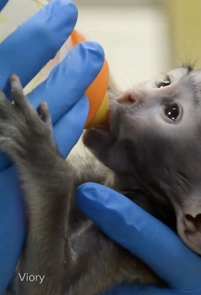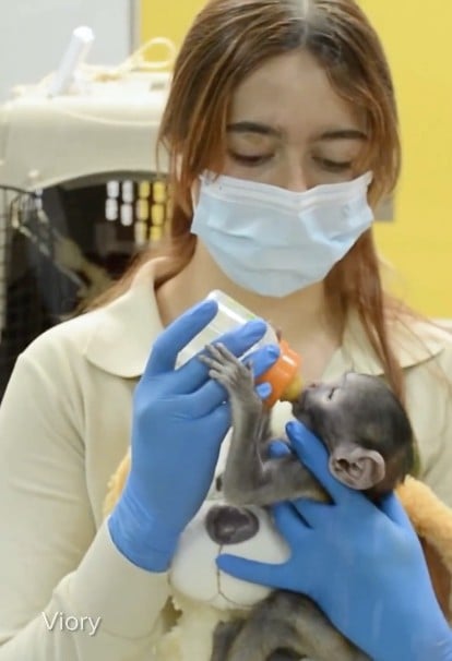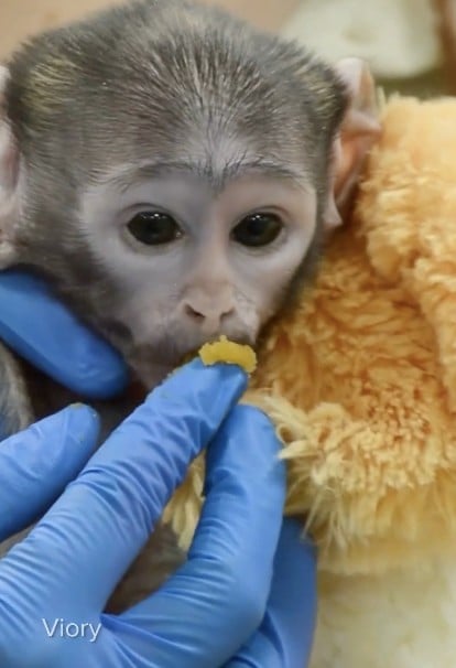 Un detalle que ha robado el corazón de los visitantes es que el pequeño mono no suelta un peluche de su misma especie.