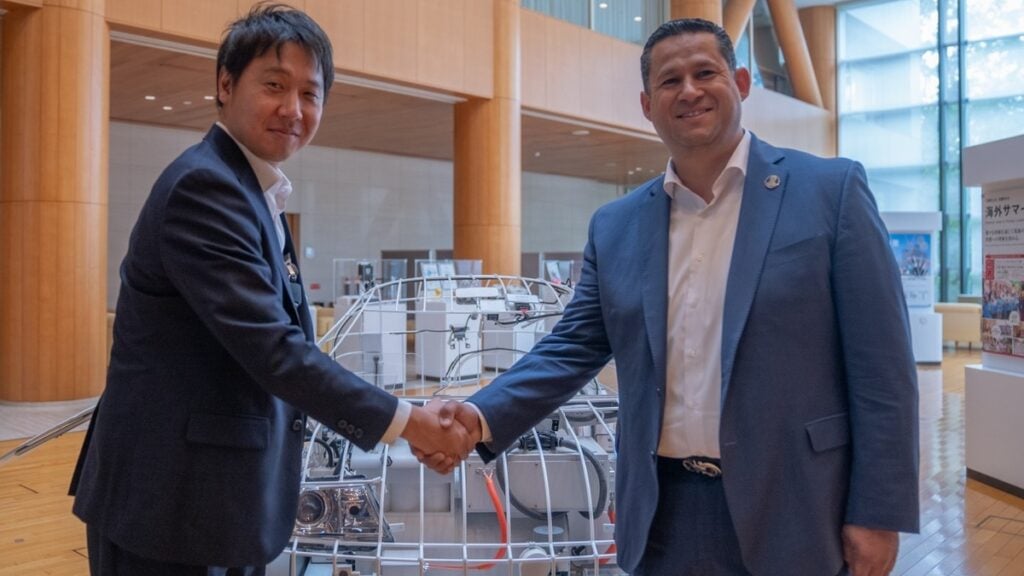 Diego Sinhue Rodríguez Vallejo asistió al Departamento de Innovación de la Oficina Central de la Corporación Sumitomo, en donde dialogó con Okuni Yujiro, gerente general de Agro-Innovación y Nagaoka Hideyuki, gerente de Negocios de Movilidad, con el objetivo de conocer prácticas que mejoren la agricultura sustentable mediante el uso de tecnologías inteligentes y limpias.