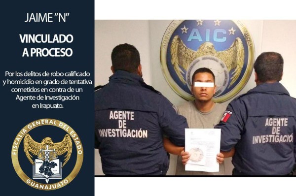 Guanajuato.- La Fiscalía General del Estado (FGE) informó el esclarecimiento de una agresión contra un ministerial la noche del 3 de agosto en calles de Irapuato, en la que Jaime robó e intentó privar de la vida a un Agente de Investigación Criminal con un arma de fuego.
