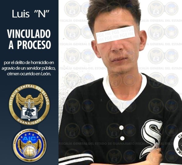 León, Gto. 30 de septiembre de 2019.- Inculpado por el delito de homicidio en agravio de un servidor público Luis “N” de 18 años ha sido vinculado a proceso penal, derivado de indagatorias de Agentes de Investigación Criminal y el Ministerio Público de la Fiscalía General del Estado.