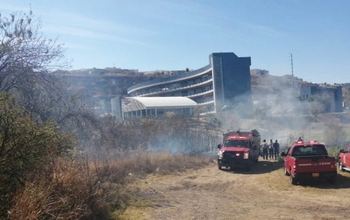 Esta tarde, alrededor de las 15:30 horas, un incendio de pastizales en Juan Alonso de Torres en la colonia San Juan Bosco se extendió rápidamente causando daños a vehículos cercanos.