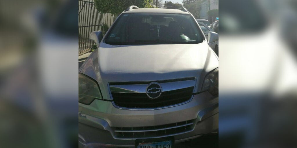 Los dos tripulantes de la camioneta Chevrolet Captiva gris con placas extranjeras, fueron revisados, y se les aseguraron 20 piezas de herraje para cocina, identificadas por la parte afectada como de su propiedad, y unas tijeras.