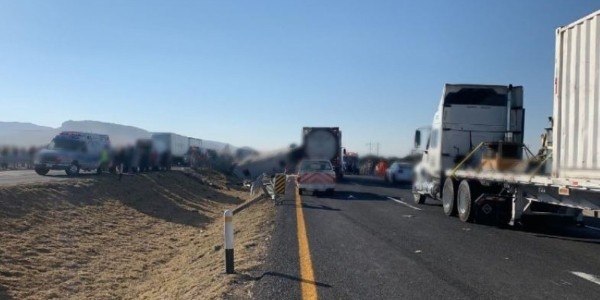 La madrugada de este miércoles en la carretera 57 de Querétaro a San Luis Potosí, a la altura de San Luis de la Paz con el entronque hacia Dolores Hidalgo, un camión de pasajeros tuvo un fuerte accidente con un tráiler de doble remolque.