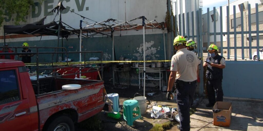 De manera preliminar se informó que fue una fuga de gas en uno de dos tanques de 10 kilos, lo que provocó la acumulación de gas y posterior flamazo en este puesto de comida de la colonia Ciudad Industrial de León.