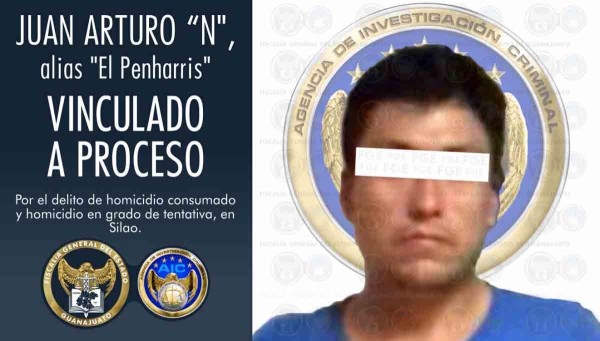 La Fiscalía General del Estado obtuvo vinculación a proceso en contra de Juan Arturo alias El Penharris, inculpado por el homicidio dos hombres y homicidio en grado de tentativa de un tercero, ocurridos en la ciudad de Silao.
