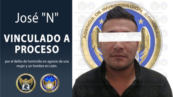 Un hombre identificado como José fue vinculado a proceso penal, luego de que un agente especializado de la Fiscalía General del Estado (FGE), expusiera ante el Juez los datos de prueba integrados en la carpeta de investigación, donde es señalado como inculpado en el delito de homicidio, en agravio de una mujer y un hombre en León.
