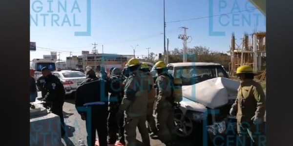 El accidente sobrevino cuando la camioneta circulaba del Libramiento Morelos a Francisco Villa y terminó impactada, ya que el conductor no alcanzó a esquivar un cierre vial que había en la zona, impactándose contra una pila de la construcción.