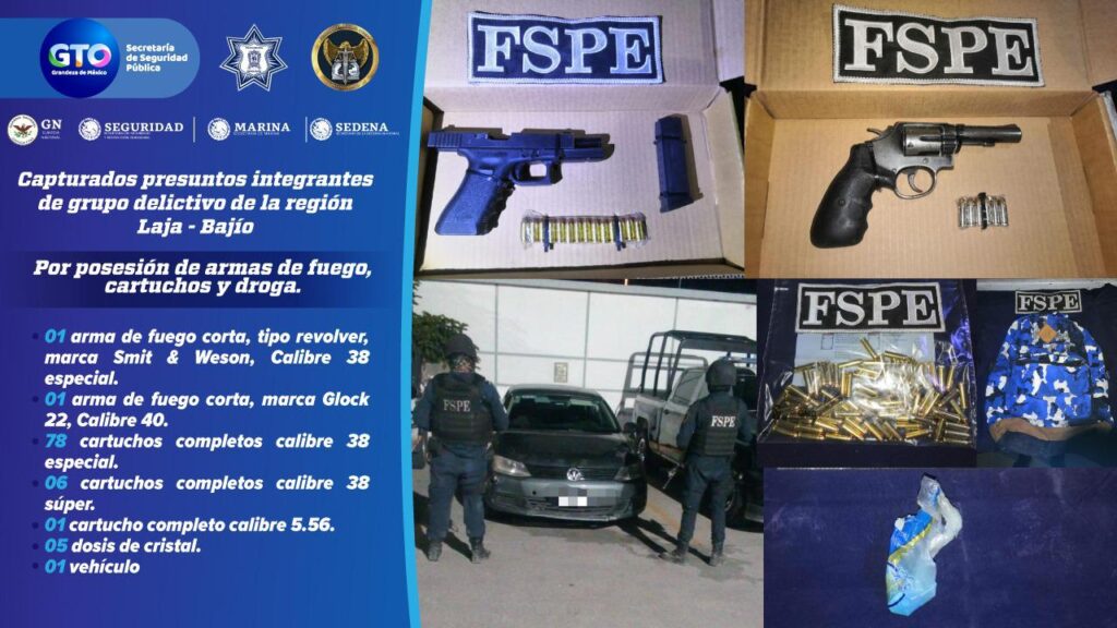 La Secretaría de Seguridad Pública del Estado de Guanajuato (SSPEG), en conjunto con la Fiscalía General del Estado (FGE) y autoridades federales lograron capturar a dos delincuentes miembros de un grupo del crimen organizado en Celaya.